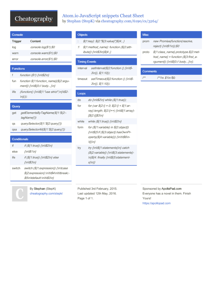 17.04.2018 · learn how to run javascript code in the atom text editor.shortcut to run code on a mac is: These snippets work well for ecmascript 6, and they are very easy to learn … Atom is a desktop application built with html, javascript, css, and node.js integration. Command + i ⌨ windows shortcut:. Adds syntax highlighting and snippets for javascript in atom. It runs on electron , a framework for building cross platform apps using web technologies. It lets you use javascript code snippets that improve your workflow and optimize your code. These snippets work well for ecmascript 6, and they are very easy to learn …